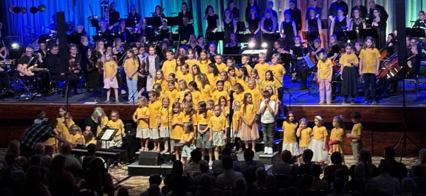 Ein ganz besonderer Höhepunkt war der gemeinsame Auftritt unseres Schulchors mit dem Orchester. Die Stimmen und Instrumente passten wunderbar zusammen – und es machte richtig Spaß, zuzuhören.