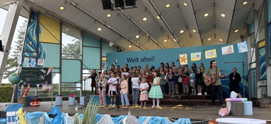 Danach wurde gemeinsam gesungen: Der Schulchor hat unter der Leitung von Herrn Haas mit fröhlichen Liedern für eine tolle Stimmung gesorgt. Die Musik hat allen gut gefallen und die Aufregung ein wenig kleiner gemacht.