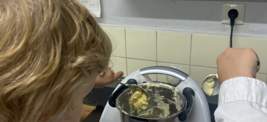 Bereits in den ersten Unterrichtsstunden legten die Schülerinnen und Schüler tatkräftig los: Es wurde gerührt, gewogen, gemischt und gelacht – der Waffelteig wurde komplett selbst hergestellt. Mit viel Engagement und Teamgeist baute die Klasse anschließend alles für den Verkauf auf.